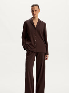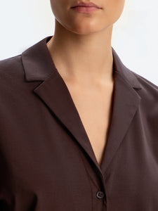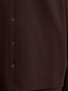 يُعتبر هذا القميص بديلاً أنيقًا عن التصاميم القطنية طويلة الأكمام ويأتي مغلق الأزرار وقد صُمم بقصة واسعة وياقة بنمط حرف V وهو مصنوع من قطن سوبيما المعالج بتقنية المرسرة لتعزيز النعومة والمتانة. يمكن تنسيقه مع البنطال المطابق من المجموعة.