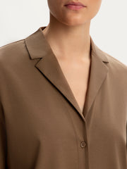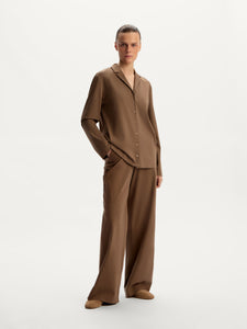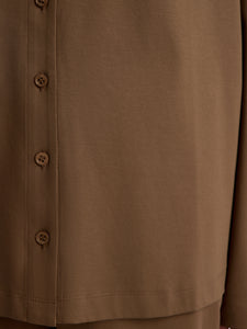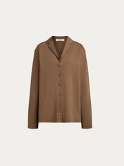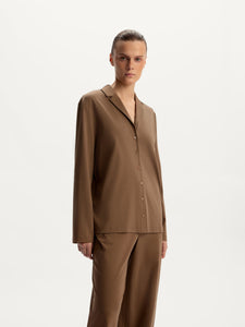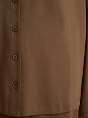 يُعتبر هذا القميص بديلاً أنيقًا عن التصاميم القطنية طويلة الأكمام ويأتي مغلق الأزرار وقد صُمم بقصة واسعة وياقة بنمط حرف V وهو مصنوع من قطن سوبيما المعالج بتقنية المرسرة لتعزيز النعومة والمتانة. يمكن تنسيقه مع البنطال المطابق من المجموعة.