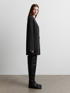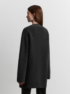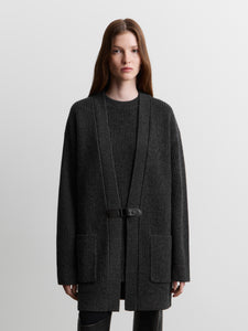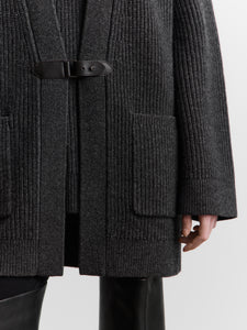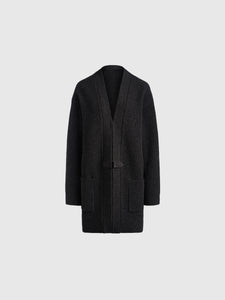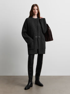 يُعتبر هذا الكارديغان الطويل قطعة بديلة مصقولة عن الملابس الخارجية للأيام الخريفية. حُبك من صوف المارينو الناعم بحبكة مضلعة فرنسية ويأتي بجيوب مربعة ويغلق بحزام جلدي رفيع وإبزيم معدني للمسة مصقولة.
