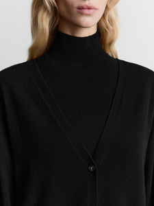 يلقى هذا الكارديغان رواجًا هائلاً، إذ قد صُنع من مزيج الكشمير وصوف المارينو ويأتي بقصة غير متماصلة وتصميم مكشوف من الخلف للمسة مصقولة. صُمم بقصة مريحة ويأتي بألوان متنوعة وقوام دافئ خفيف الوزن، ما يجعله خيارًا مثاليًا لن تملي من ارتدائه في خزانة الملابس. يأتي بألياف من الكشمير لسهولة الارتداء ويًنصح باستخدام ماكينة مخصصة لإزالة الوبر.