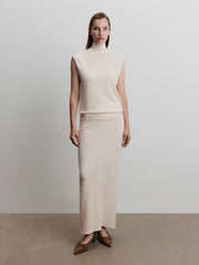 بلوزة بياقة عالية وملفوفة من صوف المارينو والكشمير