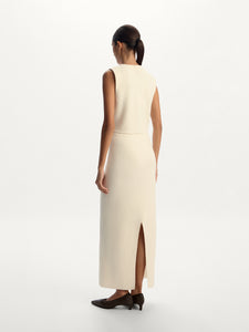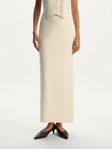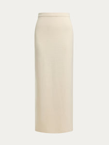 الجمع المثالي للأناقة والراحة، هذا التنورة مصنوعة من مزيج قوي من صوف الميرينو والقطن بتصميم قلم رصاص كلاسيكي مع خصر مطاطي. أكملي إطلالتك مع الكارديغان أو السترة المتناسقة من الكبسولة.