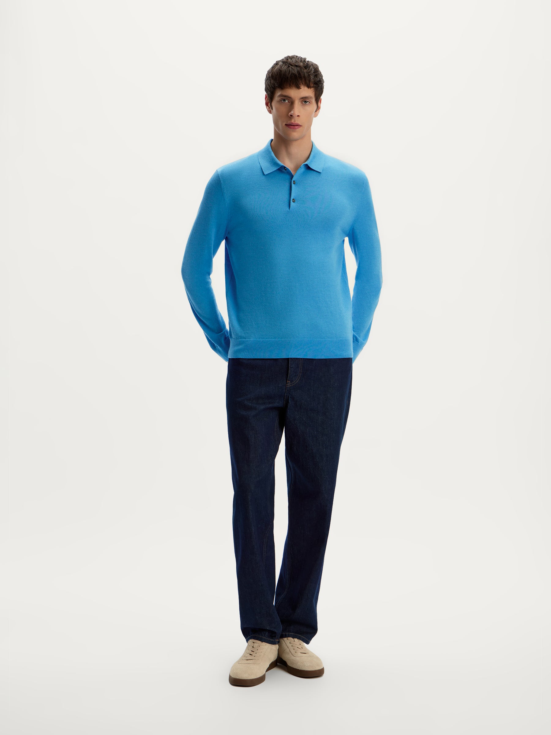 A cosy addition to any look, whatever the season. This jumper, knitted from a tactile blend of merino wool and silk, boasts a classic polo silhouette and a soft feel against the skin. Finished with mother-of-pearl buttons for a sleek touch.