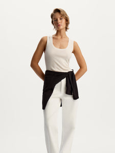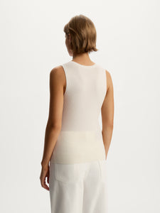 تُعتبر قطعة بديلة رائعة للبلوزات بدون أكمام القطنية وهي محبوكة بنمط مضلع من صوف المارينو الخالص الذي يحافظ على راحتك طيلة اليوم ويعانق منحنيات جسمك بكل دفء. تتميز بطابع مينيمالي رائع ويمكن تنسيقها بمفردها أو أسفل بليزر أو جاكيت من الدنيم أو غيرهما.