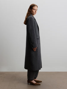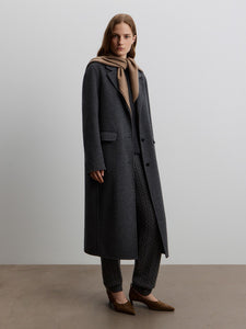 يُعتبر هذا المعطف قطعة كلاسيكية ويأتي بصف مزدوج من الأزرار وياقة بطية، ويتميز بلون أسود سهل التنسيق بأكثر من طريقة. يأتي بتقنية حياكة مزدوجة وهو مصنوع من صوف المارينو ويأتي بدون بطانة، للتميز بقوام رائع من الداخل والخارج.