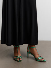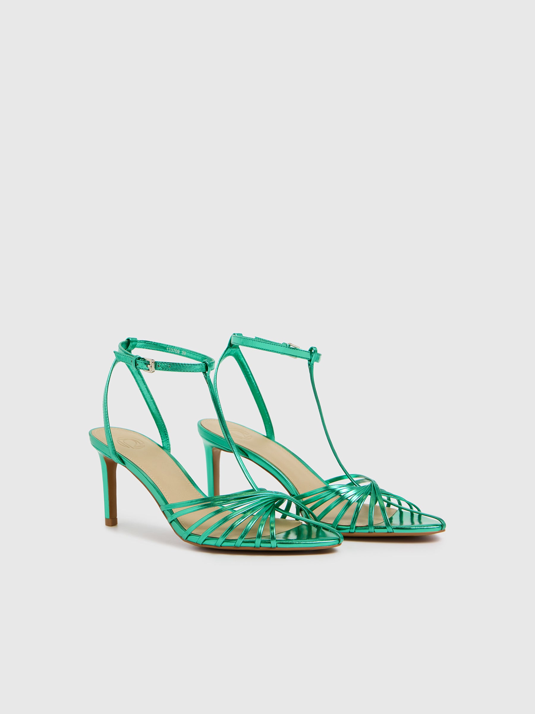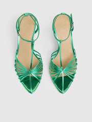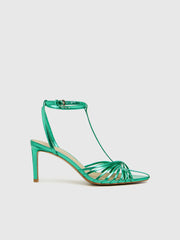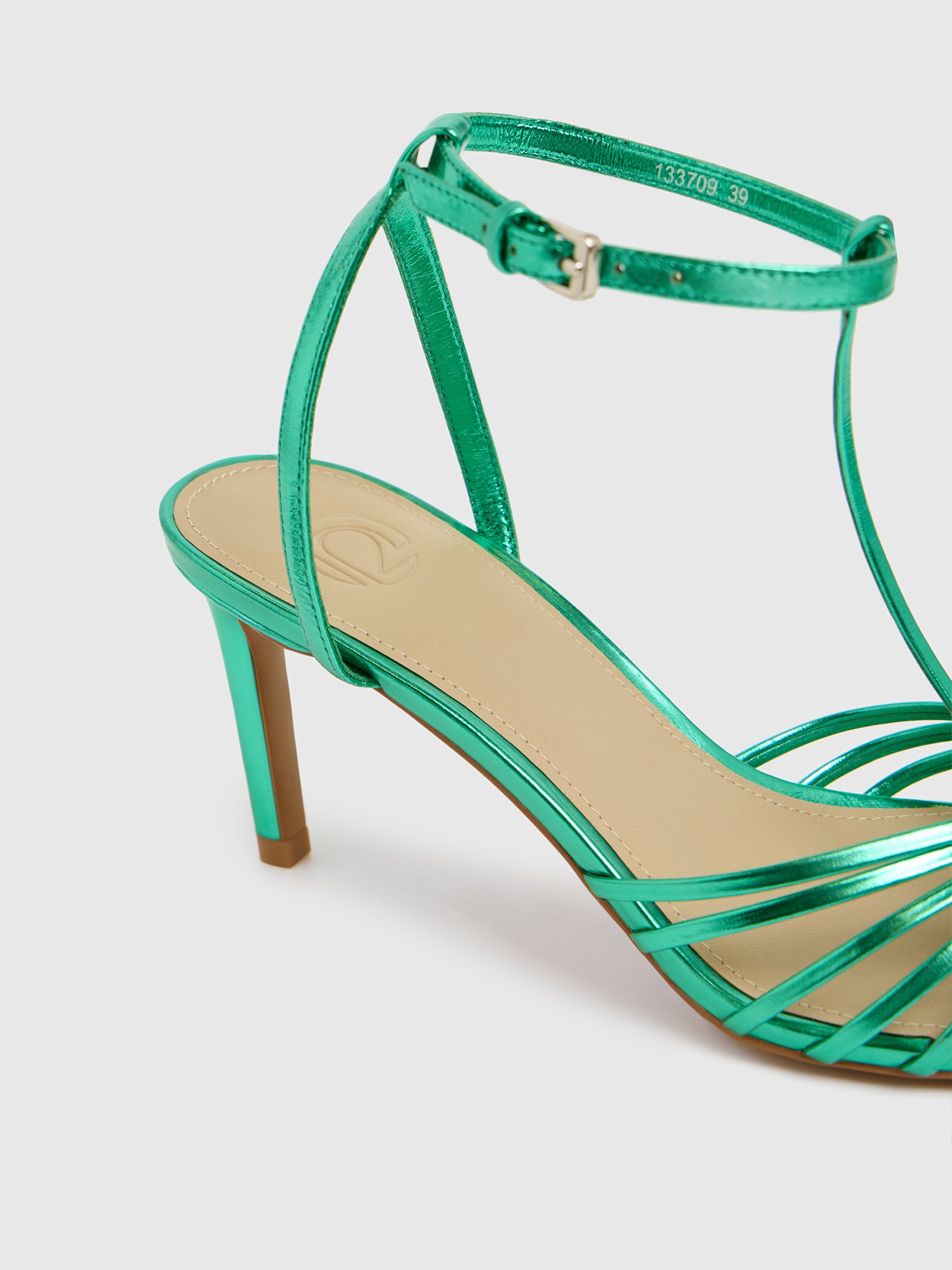 يتميز هذا الصندل بطابع احتفالي للمناسبات المميزة ويأتي بأحزمة جلدية أنيقة تعانق منحنيات القدم بكل راحة عند الكعب العالي. أما النعل الداخلي فصُنع من المايكروفايبر المتين الشبيه بالجلد.