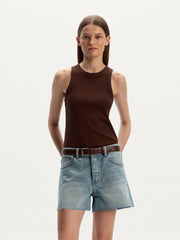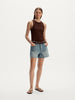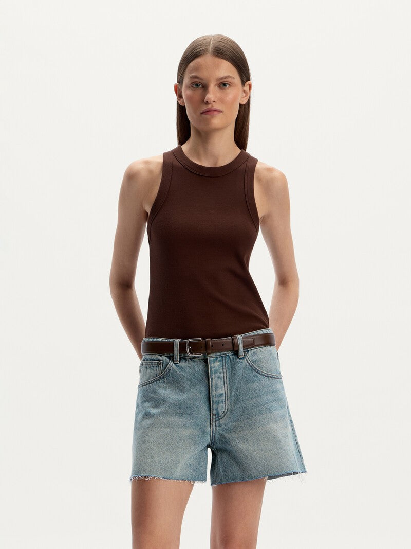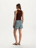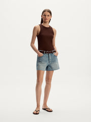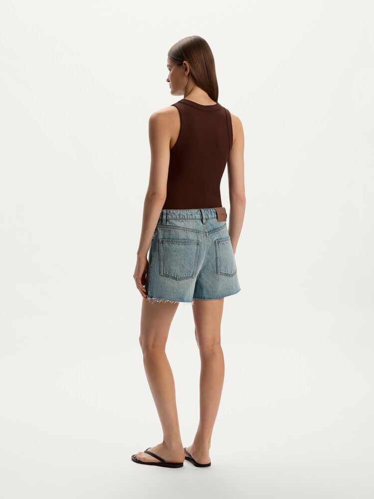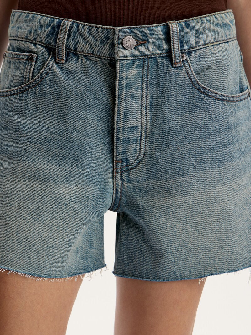 Your foundation for the summer outfits, these shorts are crafted from organic 13-oz denim in a relaxed mini silhouette, designed to sit low on your waist. The raw hem and subtle vintage tint add to their laid-back mood.