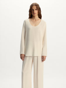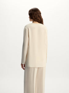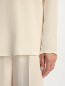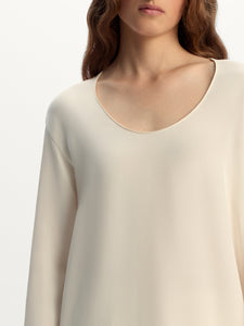 تُعتبر هذه البلوزة إضافة كلاسيكية إلى القمصان طويلة الأكمام وهي مصنوعة من حرير ميلبري وقد صُممت بقصة مريحة وتأتي بدرزات متمرسة وفتحة عنق منخفضة. يمكن تنسيقها مع تنورة حريرية مطابقة للأمسيات أو مع بنطال جينز للإطلالات اليومية.
