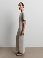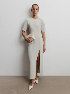 يُعتبر هذا الفستان الماكسي خيارًا مينيماليًا للمناسبات والأمسيات المميزة. صُنع من حرير ميلبري غير اللامع ويتميز بتصميم منحوت عند الخصر لينسدل بكل روعة عند الحاشية ويتميز بفتحة جانبية أنيقة للمسة مصقولة. يأتي بدون بطانة للحفاظ على قصته الانسيابية.