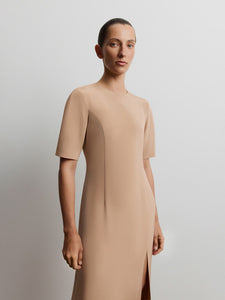 يُعتبر هذا الفستان الماكسي خيارًا مينيماليًا للمناسبات والأمسيات المميزة. صُنع من حرير ميلبري غير اللامع ويتميز بتصميم منحوت عند الخصر لينسدل بكل روعة عند الحاشية ويتميز بفتحة جانبية أنيقة للمسة مصقولة. يأتي بدون بطانة للحفاظ على قصته الانسيابية.
