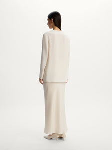 إضافة أنيقة لمجموعة ملابسك، تم قص هذا التنورة بطريقة الميل من حرير الموربيري بقصة ناعمة تنسدل بشكل جميل مع خصر مطاطي. ارتديها بتي شيرت لإطلالة يومية أو أكملي المظهر المنسق بارتداء القمة أو البلوزة المتوافقة من المجموعة.