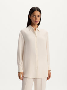 صُنع هذا القميص من حرير ميلبري وقد صُمم بقصة كلاسيكية عذبة تعانق منحنيات الجسم بكل روعة وخفة. يمكن تنسيقه مفتوح الأزرار مع بلوزة قصيرة أو حمالة صدر ويمكن وضعه أسفل بنطال جينز وتنورة. يمكن تنسيقه مع البنطال المطابق لدى 12STOREEZ لإطلالة متكاملة.