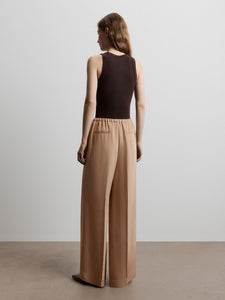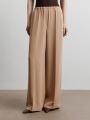 يُعتبر هذا البنطال خيارًا رسميًا لإطلالات العمل والمناسبات اليومية الأخرى، فهو مصنوع من حرير ميلبري الكثيف غير اللامع وقد صُمم بقصة مريحة مستقيمة عند الساقين ويأتي بحزام خصر مطاطي. يمكن تنسيقه مع القميص المطابق من المجموعة.