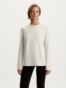 يُعتبر هذا التي شيرت القطعة الأساسية الأكثر نعومة في خزانة ملابسك، وقد صُمم بأكمام طويلة من القطن المخملي الناعم والزغبي، وقد صُمم بقصة مريحة للغاية. يمكن تنسيقه بمفرده أو مع قطع أخرى.