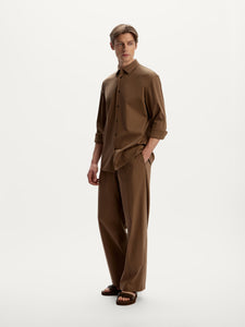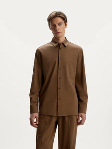 يُعتبر هذا القميص قطعة بديلة مريحة عن التصاميم الكلاسيكية مغلقة الأزرار وهو مصنوع من قطن بيما ويأتي بقوام ناعم ولمسة نهائية لامعة عذبة. يمكن تنسيقه مغلق الأزرار بالكامل أو فوق تي شيرت. يتماشى للغاية مع البنطال المطابق المصنوع من قطن بيما من مجموعتنا.
