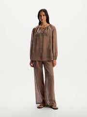The ultimate pair for beach days, these trousers are crafted from ramie  a breathable, lightweight fabric made from nettles, grown without pesticides or chemicals and using less water. Featuring an elasticated drawstring waist, they softly adjust to your curves. Complete the set with the matching 12 STOREEZ blouse.