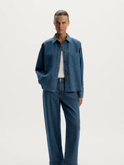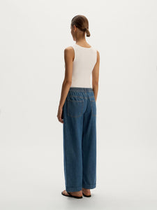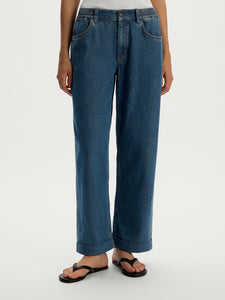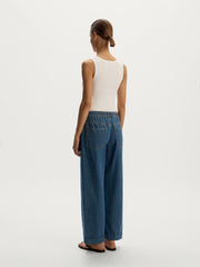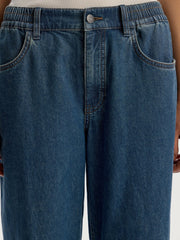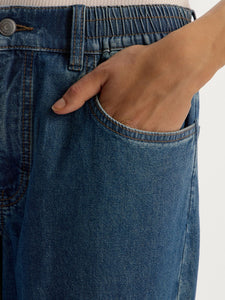 استُوحي بنطال الجينز هذا من تصاميم الدنيم الكلاسيكية وهو مصنوع من القطن بوزن 8 أونصة وهو مثالي للأيام الدافئة. صُمم بخصر منخفض وقصة مريحة وحزام خصر مطاطي مريح. يأتي بلون أزرق كلاسيكي ويتميز بتدرجات صبغة خضراء يسهل تنسيقه بأكثر من طريقة مع جميع القطع في خزانة الملابس. يمكن تنسيقه مع القميص المطابق من المجموعة لإطلالة متكاملة.