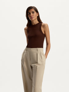 تُعتبر البلوزة بدون أكمام هذه قطعة أساسية لا غنى عنها في خزانة الملابس وقد صُممت بقصة ضيقة تعانق منحنيات الجسم بكل روعة وهي مصنوعة من القطن الناعم بنمط مضلع. تأتي بطول يسهل تنسيقه بأكثر من طريقة، ما يمكّنك من وضعها أسفل بنطال الجينز لإطلالة غير رسمية ومريحة.