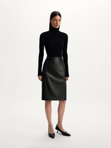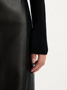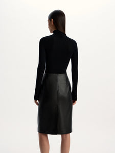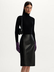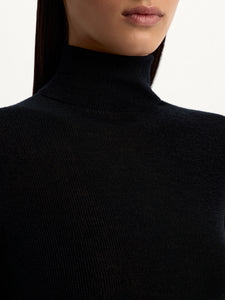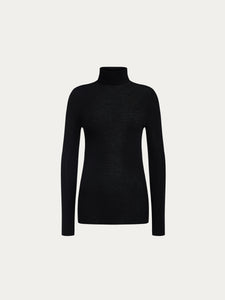 بلوزة بياقة عالية وملفوفة من صوف مارينو المضلع