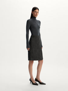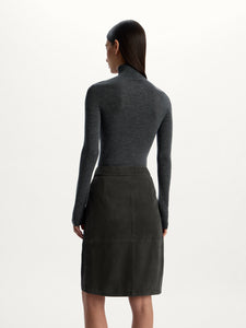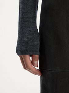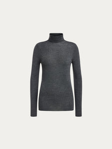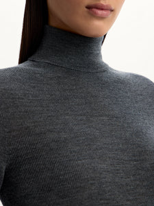 بلوزة بياقة عالية وملفوفة من صوف مارينو المضلع