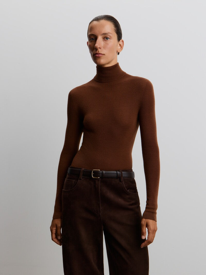 A 12 STOREEZ bestseller, this seamless turtleneck is designed as your base layer for colder days, offering a cosy, close fit in ribbed merino wool. Each fibre is treated with a special finish to help prevent stretching or shrinking after washing.