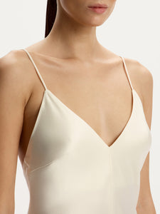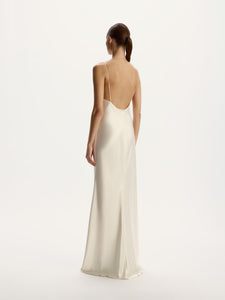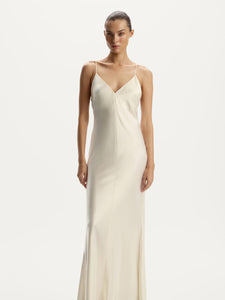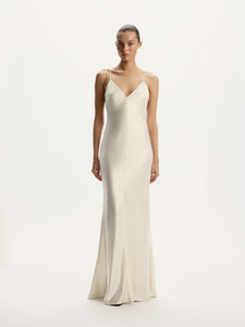 يأتي هذا الفستان بطول يلامس الأرض ويُعتبر قطعة أنيقة للمناسبات المميزة وهو مصنوع من الساتان الثقيل الذي ينسدل فوق الجسم ويلمع بكل تناغم مع خطواتك. يتميز بحمالات أنيقة أنيقة بطول معزز لتعديل المقاس بشكل مثالي.