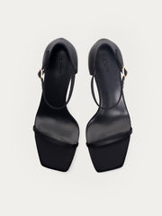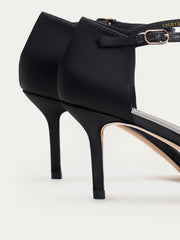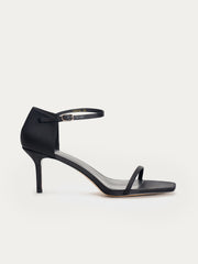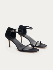 زوج من الصنادل ذات الحزام الرفيع لموسم الأعياد. مصنوعة من الحرير مع حزامين أنيقين سيعانقان قدميك برفق. استخدميها لاستكمال الإطلالات التي تشمل المخمل والحرير من كبسولة مجموعتنا المسائية.