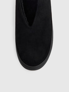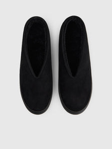 صُنع حذاء اللوفر هذا من جلد السويد ويأتي ببطانة من الصوف الناعم للتنعم بالراحة طيلة اليوم خلال الموسم البارد. يتميز بنعل داخلي مبطن عند الكعب وبحواف مطاطية للوقاية من الخدوش والبقع.