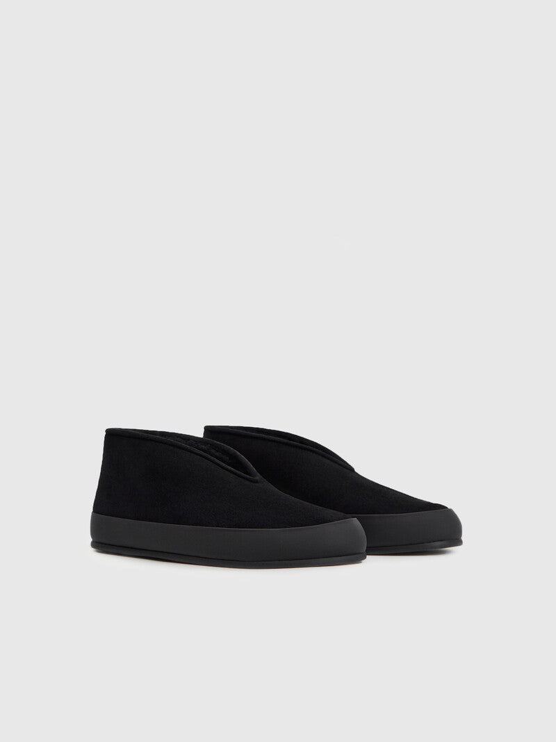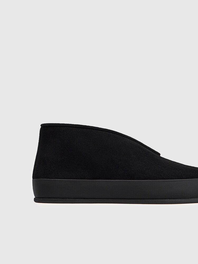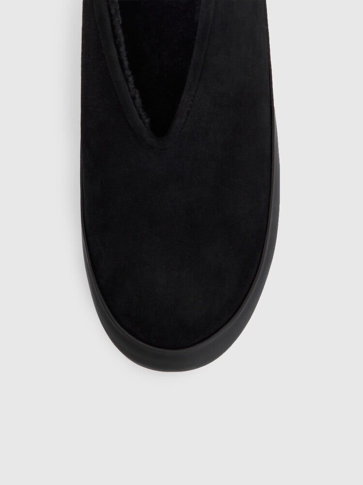 80% Natural goat suede. 20% Natural cow leather. Lining: 100% Shearling. Insole: 100% Shearling. Outsole: 100% Rubber