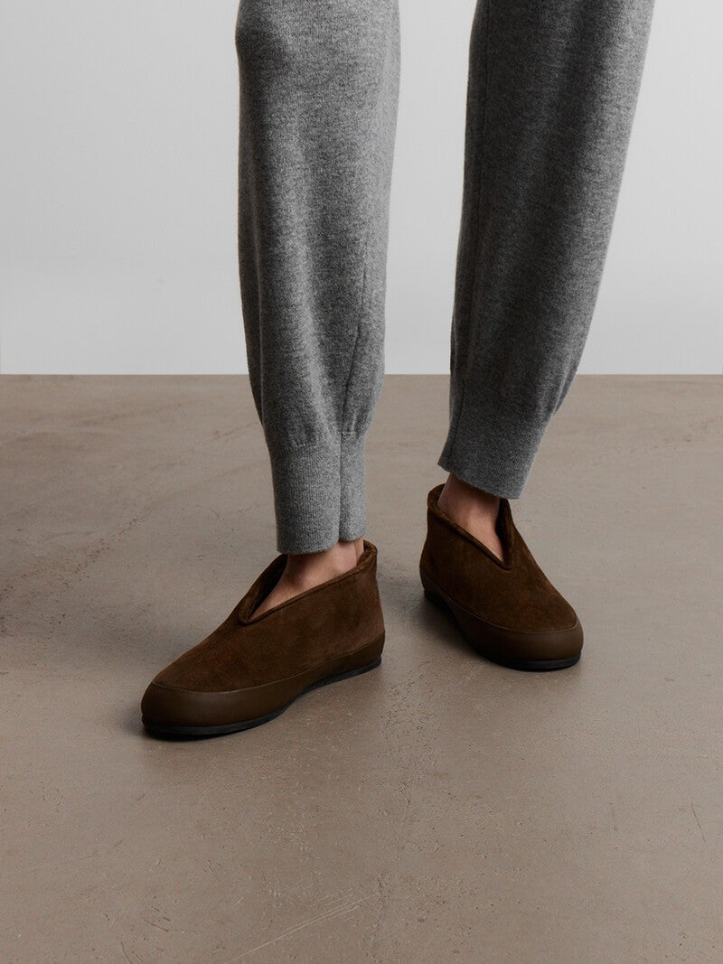 80% Natural goat suede. 20% Natural cow leather. Lining: 100% Shearling. Insole: 100% Shearling. Outsole: 100% Rubber