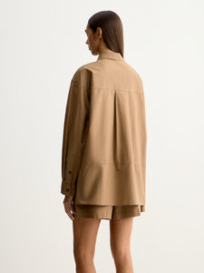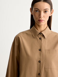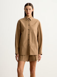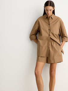 يُعتبر هذا القميص قطعة أساسية مريحة ومصقولة وهو مصنوع بقطع قماشية متعددة من القطن الخالص ويتميو بلمسة فريدة مينيمالية. يزدان بكسرات من الخلف وأكتاف منخفضة لتعزيز الحجم. يمكن تنسيقه مع الشورت المطابق من المجموعة لإطلالة متكاملة.