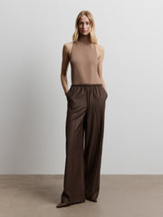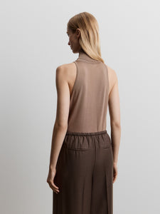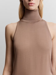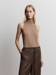 بلوزة بياقة عالية وملفوفة محبوكة من الحرير