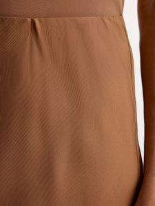 تُعتبر هذه التنورة إضافة أنيقة إلى خزانة ملابسك وتأتي بتصميم مائل وهي مصنوعة من حرير ميلبري غير اللامع وقد صُممت بطابع منسدل وحزام خصر مطاطي. يمكن تنسيقها مع تي شيرت للإطلالات اليومية غير الرسمية أو مع قميص مطابق من المجموعة لطابع مصقول.