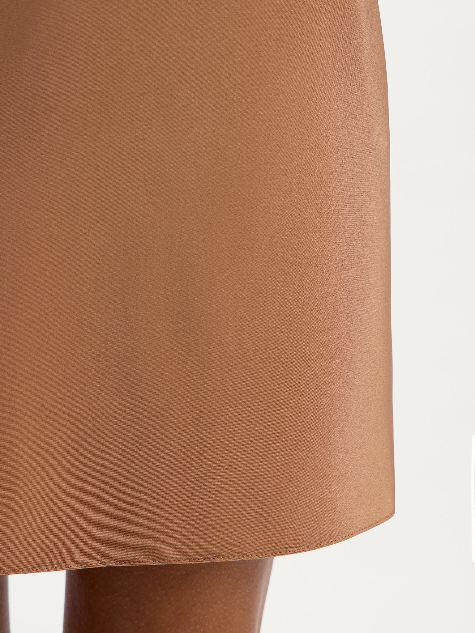 تُعتبر هذه التنورة القصيرة إضافة أنيقة إلى خزانة ملابسك وهي مصنوعة من الحرير الكثيف وقد صُممت بطابع مينيمالي وتخلو من أيّ تفاصيل جمالية مزخرفة لسهولة التنسيق مع القطع الأخرى. تأتي بحزام خصر مطاطي لتبرز منحنيات جسمك بكل روعة.