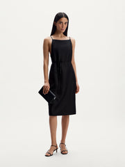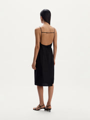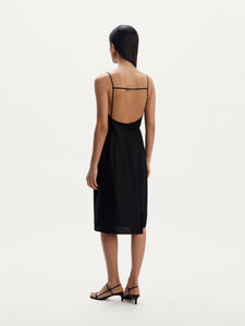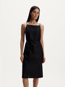 يُعتبر هذا الفستان قطعة أنيقة للأمسيات وهو مصنوع من حرير ميلبري انسيابي ويأتي بحبكة جاكار ولمسة شبه لامعة عذبة. يأتي بدون أزرار للإغلاق لينسدل بكل روعة حول منحنيات الجسم ويتميز بتصميم مكشوف من الخلف وحزام طويل لخصر منحوت.