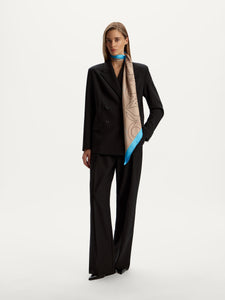 يضفي هذا الوشاح لمسة أنيقة إلى جميع إطلالاتك وهو مصنوع من الحرير ويأتي بمقاس 90×90 سم ليسهل تنسيقه بأكثر من طريقة. يمكن تنسيقه كقطعة إكسسوار للشعر أو لفه حول العنق أو ارتداؤه بشكل حزام أو عقدة عند حزام الحقيبة. صُنع من الحرير الخالص ويزدان بطبعات شعار 12STOREEZ ويتميز بحواف مدروزة يدويًا. يأتي في علبة تحمل شعار العلامة الشهير.