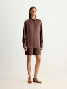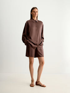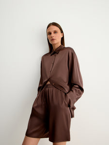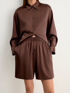 يدمج هذا الشورت بشكل مثالي ما بين الراحة والأناقة ويُعتبر قطعة مثالية للعطلات والاسترخاء في المنزل وغيرهما. صُنع من حرير ميلبري ويتميز بقصة فضفاضة وحزام خصر مطاطي مريح وجيوب جانبية. يمكن تنسيقه مع القميص أو الكاميسول المطابق من المجموعة لإطلالة متكاملة.