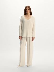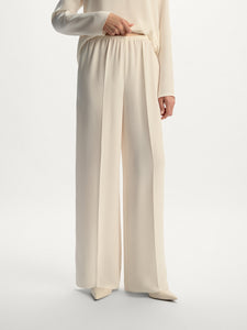 يُعتبر هذا البنطال خيارًا رائعًا للإطلالات على الشاطئ والأمسيات والاسترخاء وغيرها. صُنع من حرير ميلبري وقد صُمم بقصة مريحة وحزام خصر مطاطي مريح. يمكن تنسيقه البلوزة المطابقة من المجموعة لإطلالة متكاملة.