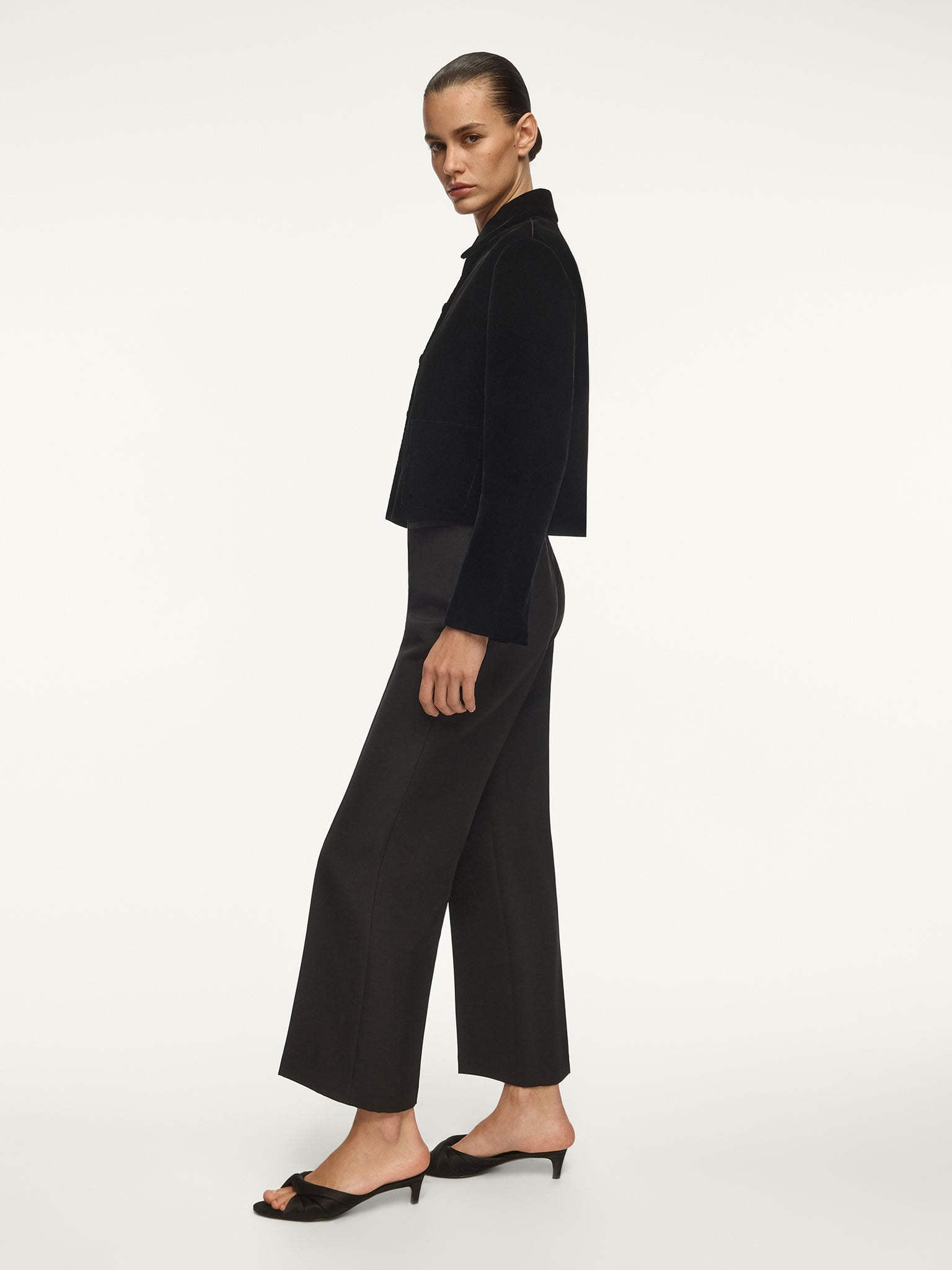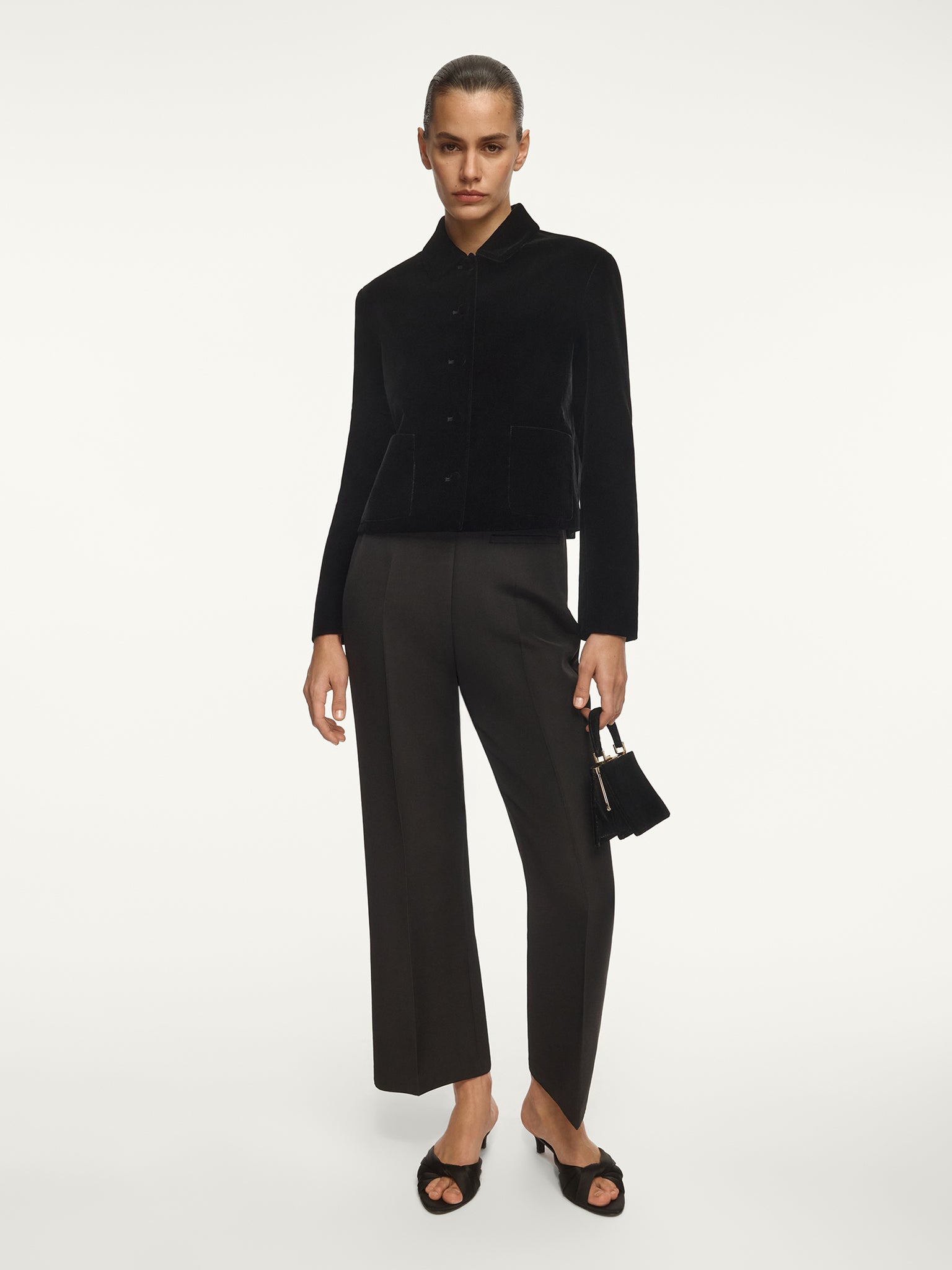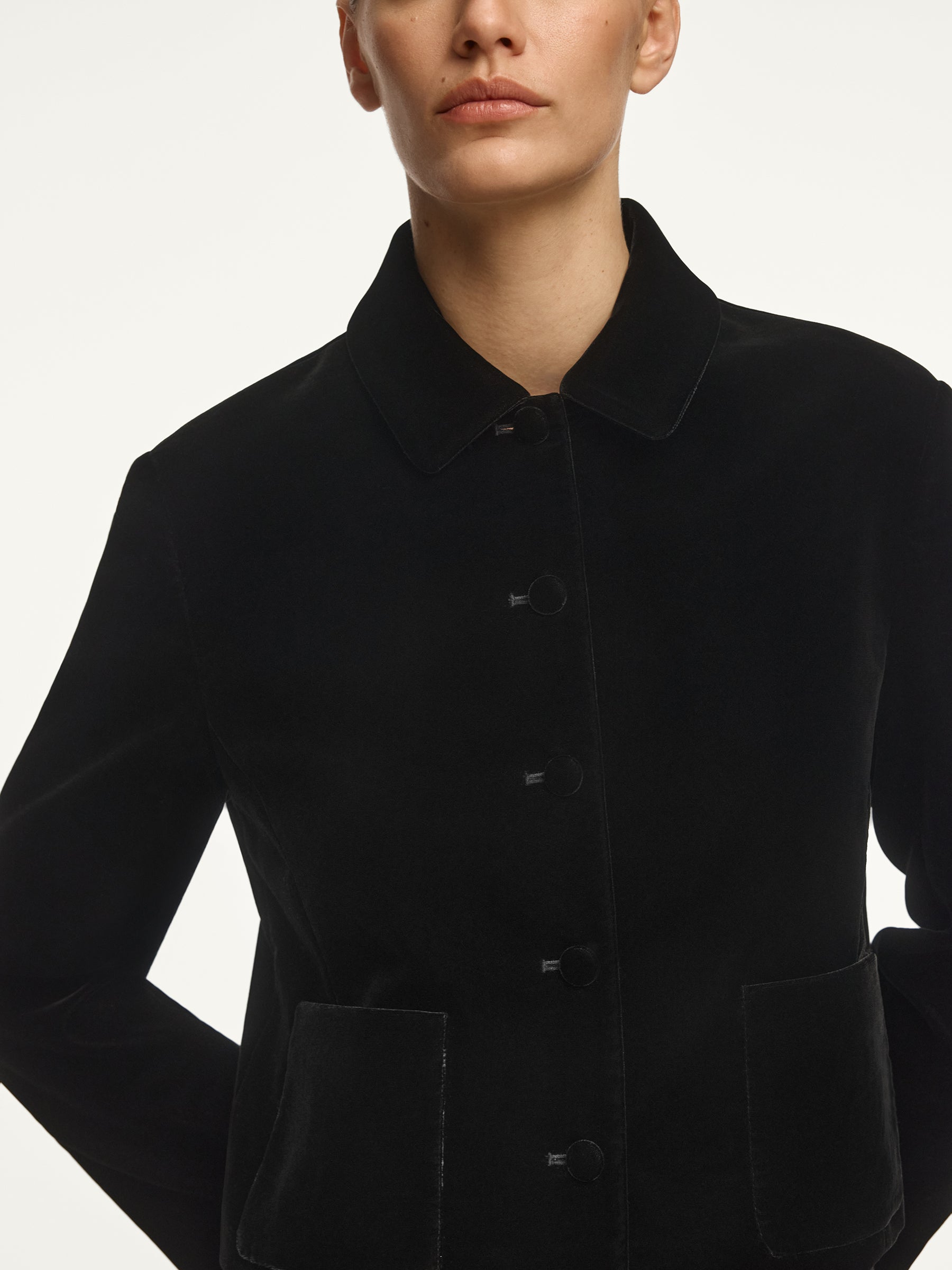 صُنع هذا الجاكيت المخملي في مصنع أجيارا في اليابان للمخمل وهو المصنع المورد نفسه لكل من علامات أرماني وكوم دي جارسون وبرادا. صُنع من المخمل وقماش كوبرو الناعم وجيد التهوية والانسيابي ويأتي بتقنية وبر متينة لا تفقد قوامها مع الوقت. يتميز بفتحات وقصة أنيقة تحاكي الإطلالات الجاهزة المنسقة. يأتي ببطانة كاملة من قماش كوبرو الناعم لقصة مريحة ومحددة الشكل.