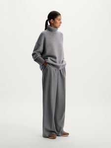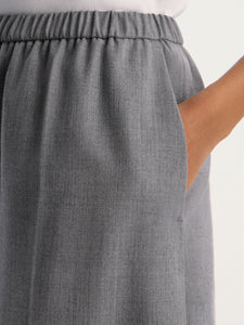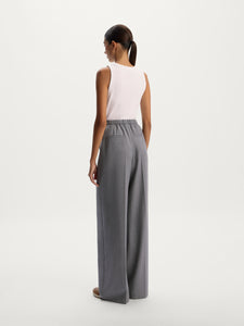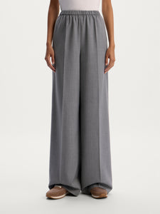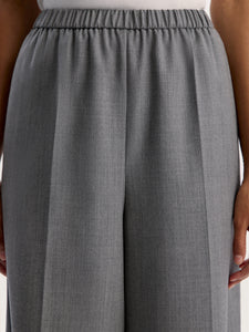 بنطلون لأي مناسبة، يتميز بقصة مستقيمة متعددة الاستخدامات وخصر مريح بحزام مطاطي. صُنع من صوف ميلانج ناعم بلون رمادي يمكن دمجه بسهولة في أي اطالة.