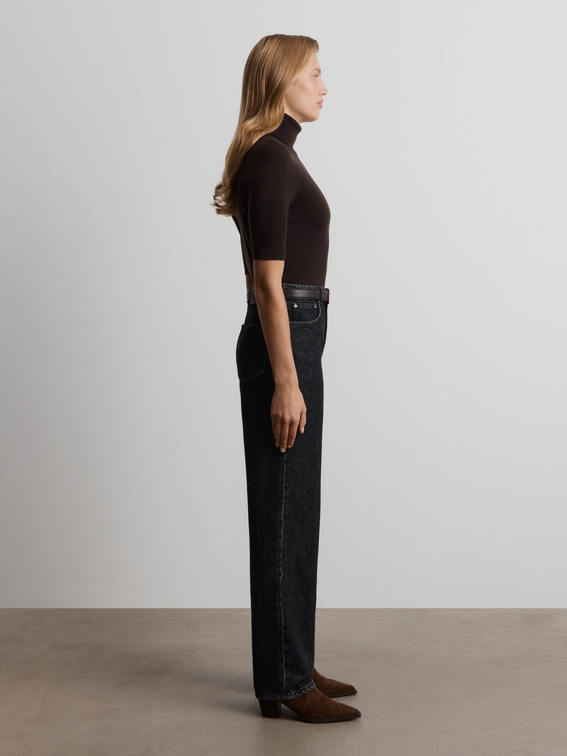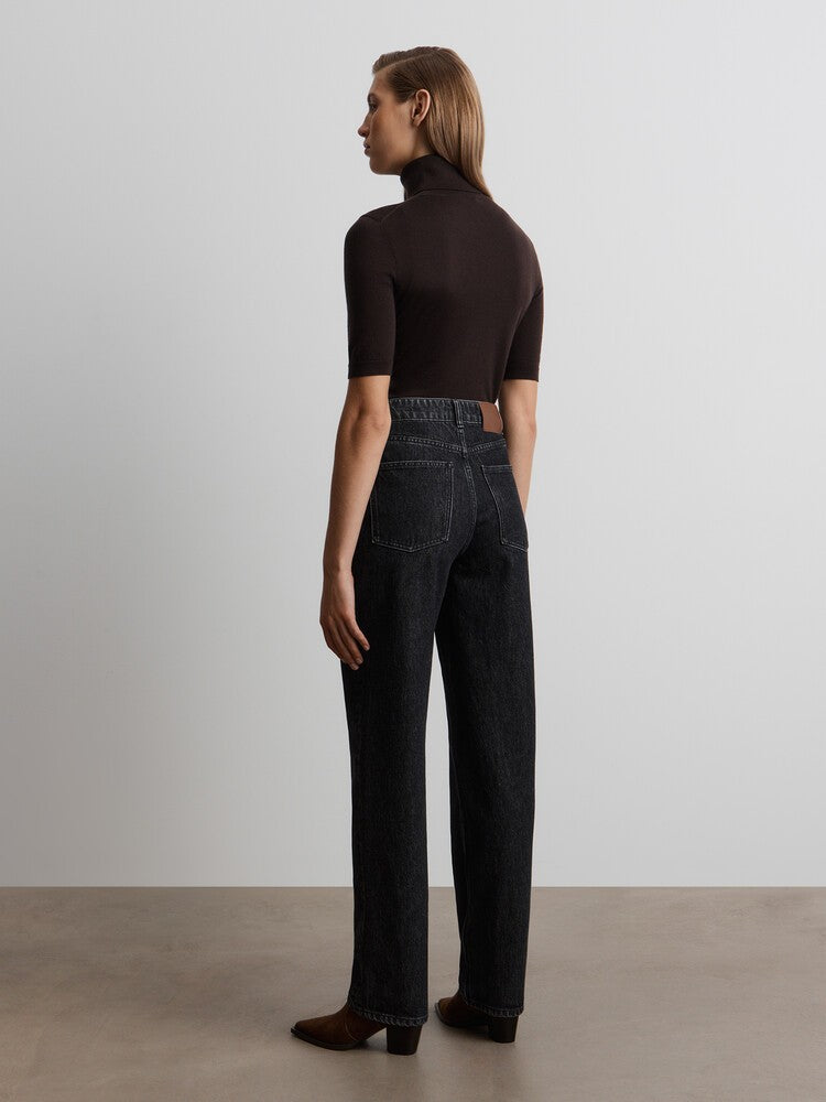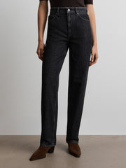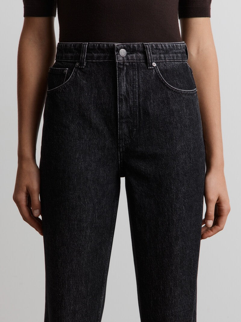 يُعتبر هذا البنطال من القطع الأكثر مبيعًا لدى 12STOREEZ وقد صُمم بقصة مستقيمة كلاسيكية وخصر مرتفع. صُنع من القطن العضوي الموافق لمعيار القطن العضوي العالمي لاعتماد الأقمشة العضوية وتقنيات الاستحصال على المواد الصديقة للبيئة ومراعاة ظروف العمل العادلة والأجور المنصفة. صُنع من الدنيم بوزن 14.5 لقوام متين ومحدد الشكل ويُغلق بسحاب وبرقعة جلدية.