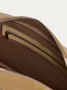 تُعتبر هذه الحقيبة قطعة إكسسوار مثالية لإطلالات المدينة وهي مصنوعة من جلد السويد وتتميز بقسم رئيسي ومقبضين وحزام كتف قابل للفصل مبطن بجلد فاتح اللون للحماية من تسرب الألوان إلى الملابس. تأتي بقاعدة معدنية للحماية من الخدش.