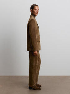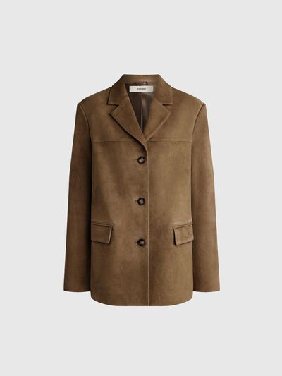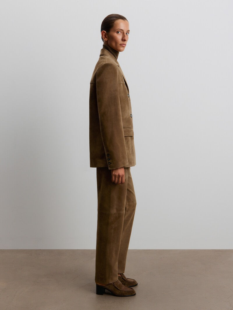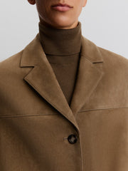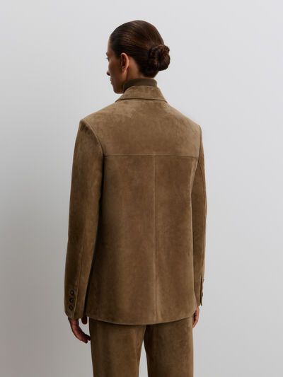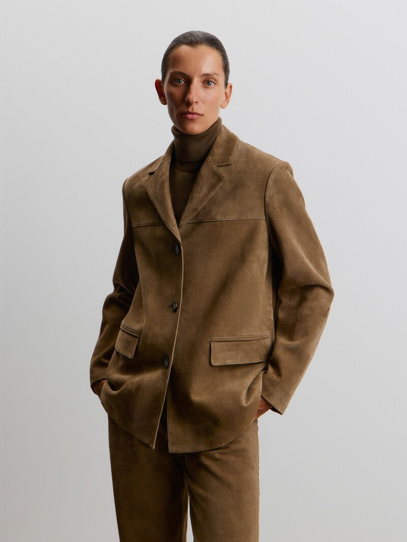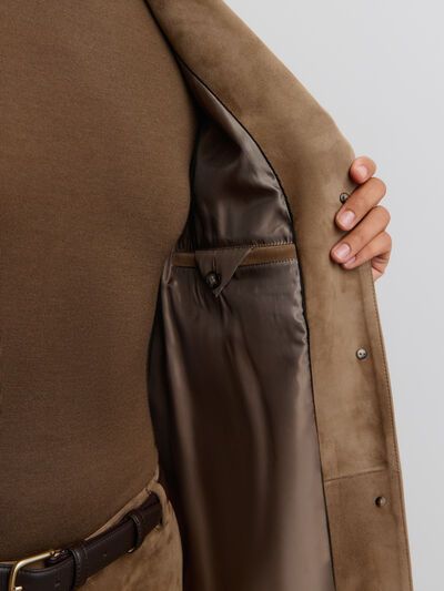 - Jacket crafted from soft, dense suede in a versatile cream tone