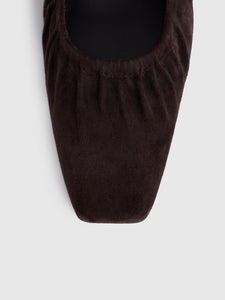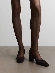 صُنع حذاء البامب هذا من جلد السويد الناعم ويأتي بلون أسود داكن ويتميز بنعل عريض لتعزيز الثبات والراحة. يأتي بحواف مزمومة لتعزيز قوام الخامة. يأتي ببطانة جيدة التهوية ومتينة من المايكروفايبر وبنعل داخلي مصنوع من جلد شيفرو ناعم. يبلغ ارتفاع الكعب 70 ملم.