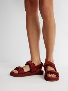 يُعتبر هذا الصندل قطعة مثالية للإطلالات في المدينة وهو مصنوع من جلد السويد ويتميز بأشرطة فيلكرو لاصقة قابلة للتعديل ونعل داخلي مقاوم للتلف من المايكروفايبر ليحاكي ملمس الجلد الطبيعي وقوامه. يأتي بتصميم سهل التنسيق بأكثر من طريقة ليتماشى مع جميع الإطلالات.