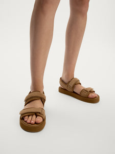 يُعتبر هذا الصندل خيارك الأروع للإطلالات الصيفية وهو مصنوع من جلد السويد ويتميز بأشرطة فيلكرو قابلة للتعديل لمقاس محكم. يأتي بنعل داخلي متين من المايكروفايبر ليحاكي ملمس الجلد وطابعه ويتميز بأربطة مبطنة قليلاً للتنعم بالراحة طيلة اليوم.