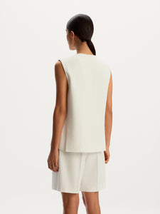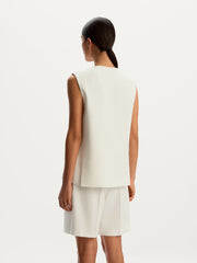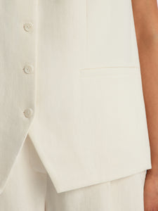 A structured linen-blend vest with a clean, slightly elongated silhouette. Easy to style on its own or layered over a T-shirt, it’s made from fabric by our Portuguese partner that combines the lightness of linen with the smooth feel of synthetic fibres — helping it hold its shape and wrinkle less, so you always look put-together.