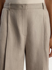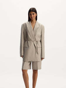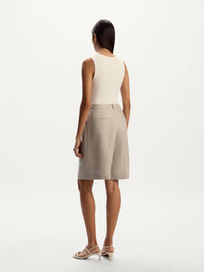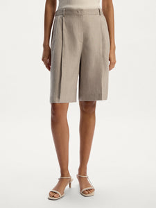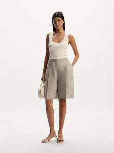 يُعتبر هذا الشورت قطعة مصقولة للإطلالات الصيفية وقد صُمم بقصة مستقيمة عند الساقين ويأتي بكسرات حادة عند الخصر وهو مصنوع من الكتان بقصة محددة الشكل بنمط ديلافيه للتألق بكل روعة. يمكن تنسيقه مع البليزر المطابق من المجموعة.