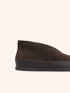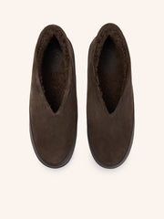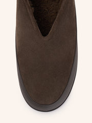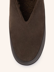 يُعتبر حذاء اللوفر نسخة محدثة عن تلك الأكثر مبيعًا، إذ يأتي بنعل أكثر سماكة من الأحذية النمطية المعهودة. يُعتبر خيارًا مثاليًا للوقاية من الأوساخ والخدوش وهو مصنوع من جلد سويد ماعز طبيعي معزز بحافة عريضة من جلد البقر المطاطي لطابع عملي للغاية. يأتي ببطانة من الصوف الناعم الطبيعي ويتميز بحافة كثيفة من الصوف. يأتي بتصميم متقن بعناية ونعل عالٍ عند الكعب لتعزيز الدعم والتوازن والراحة.