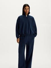 يُعتبر هذا البنطال مثاليًا للسفر والاسترخاء والإطلالات غير الرسمية ويأتي بتصميم مريح وحزام خصر مطاطي قابل للتعديل بواسطة رباط شد. صُنع من قطن تيري الفرنسي الثقيل بلمسة من البوليستر، ما يجعله سهل العناية وخيارًا عمليًا على حد سواء. يأتي بحافة غير مدروزة للتنعم بطابع مريح غير كاجوال. يمكن تنسيقه مع السويت شيرت المطابق لدى 12STOREEZ لإطلالة متكاملة.